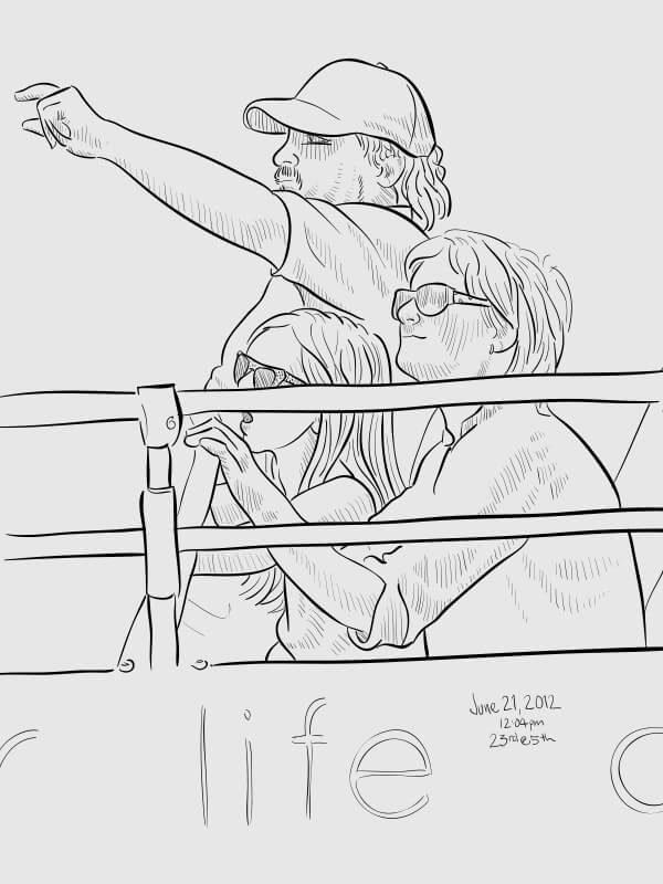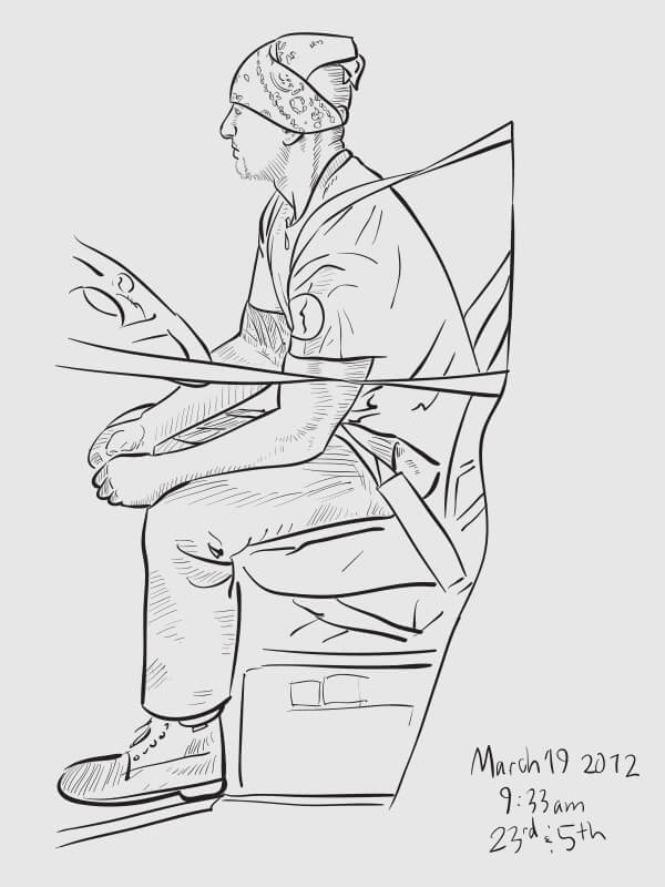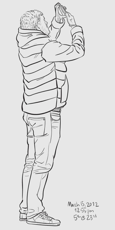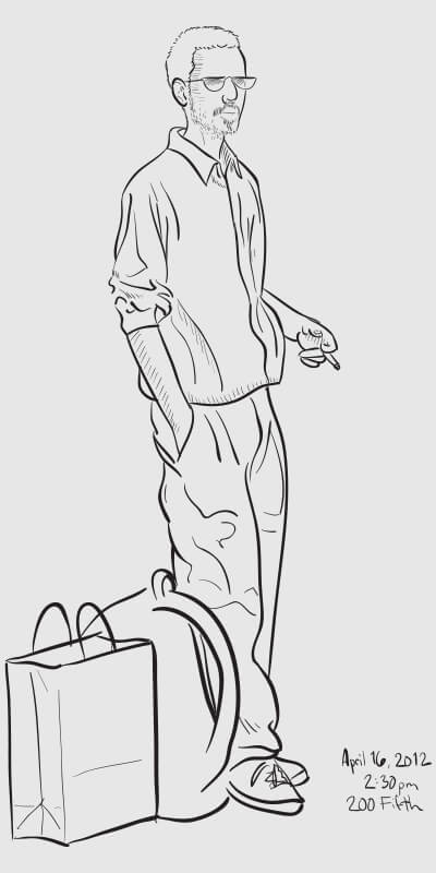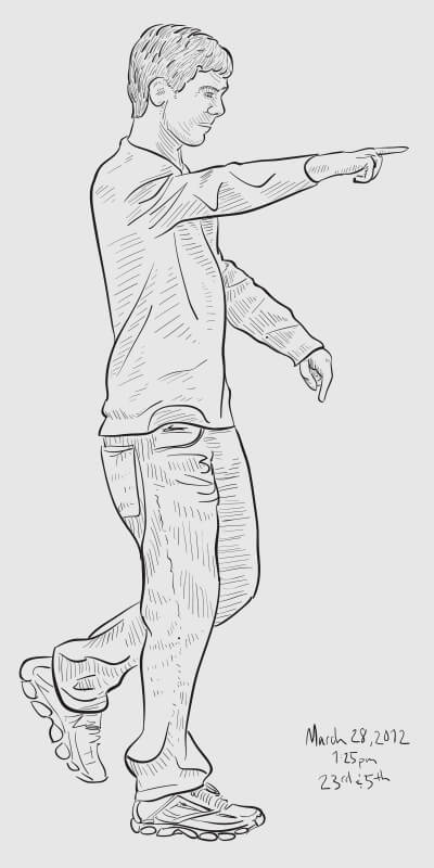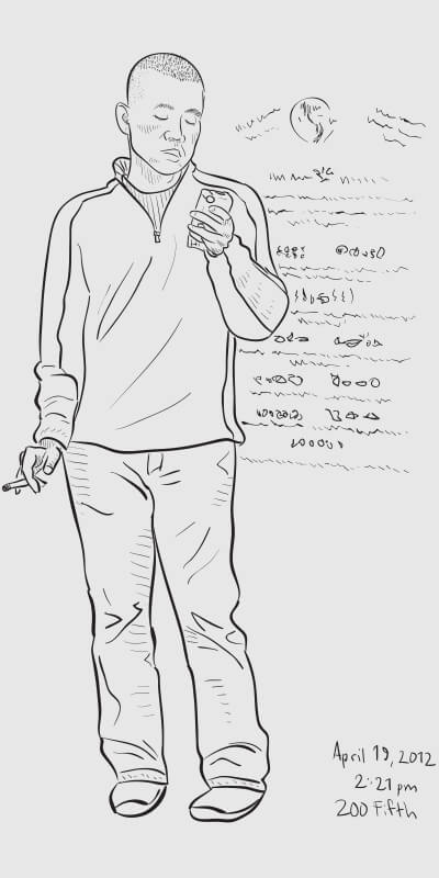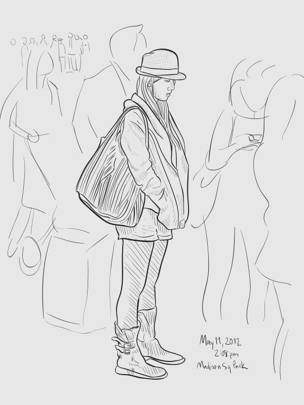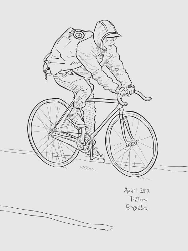 A series of snapshot-based line drawings: one per day for one hundred days. Starting in late winter and continuing through the middle of summer, I would grab a snapshot each day from around the Flatiron neighborhood (on the street or out my 2nd story office window) and take 15–20 minutes to create a vector drawing in Illustrator. Shown are some of the more successful results.