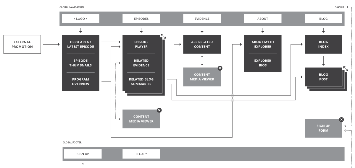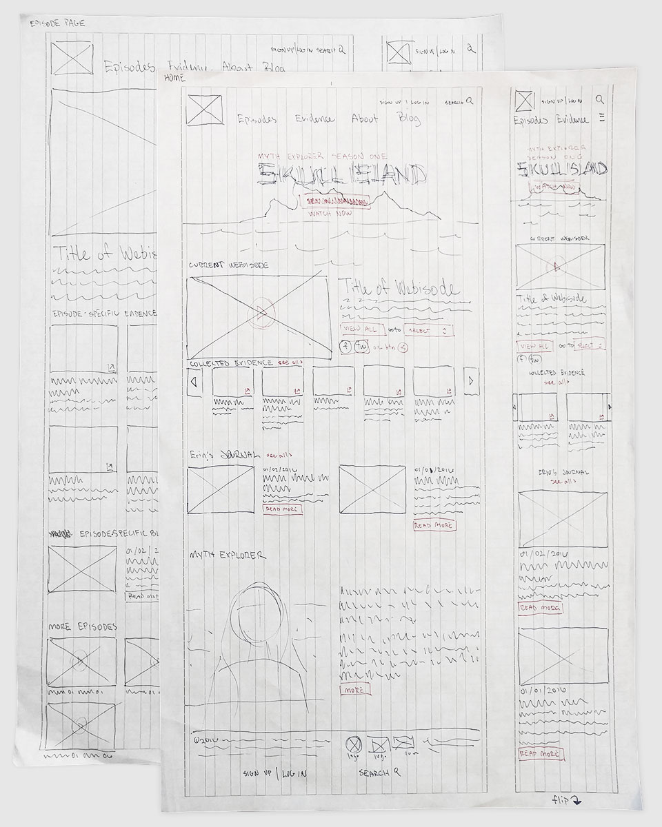 After the initial sketches, I began working in-browser. This allowed me to layer in some simple functionality and demonstrate responsive layout behaviors natively. It also helped keep everyone honest regarding the amount of content and copy that could fit comfortably on a page.