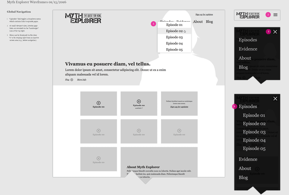 To document specific features and describe the behaviors of individual elements, I annotated the wires using screenshots of the HTML build.